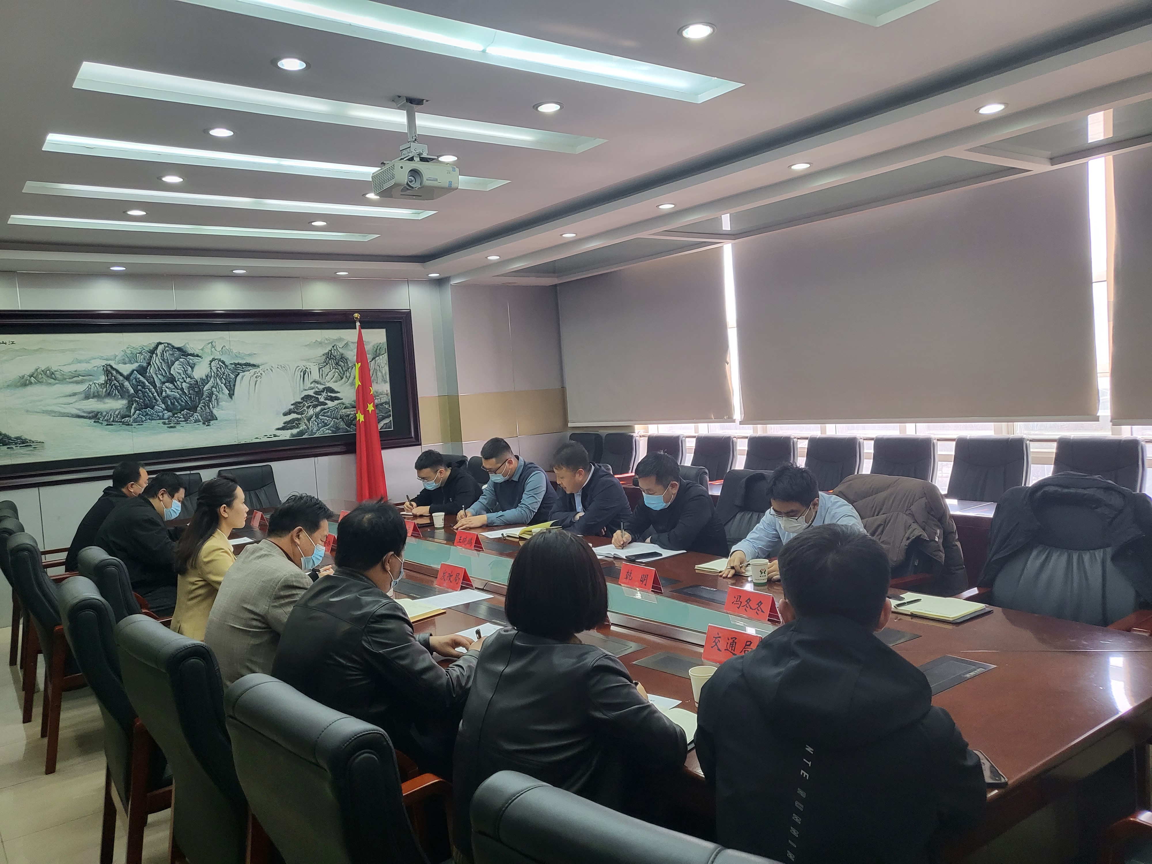 2022年4月8日,晟德公司總經理王曉鵬、副總經理馮金東一行前往平泉市,與平泉市政府就交投平泉300MW風電項目調度會。平泉市長趙英楠出席會議,自然資源規劃局、環保局、林草局、發改局、交通局等主要領導及設計院、測繪公司相關通知參加會議。會議就交投平泉300MW風電項目當前存在問題進行討論并提出解決辦法。